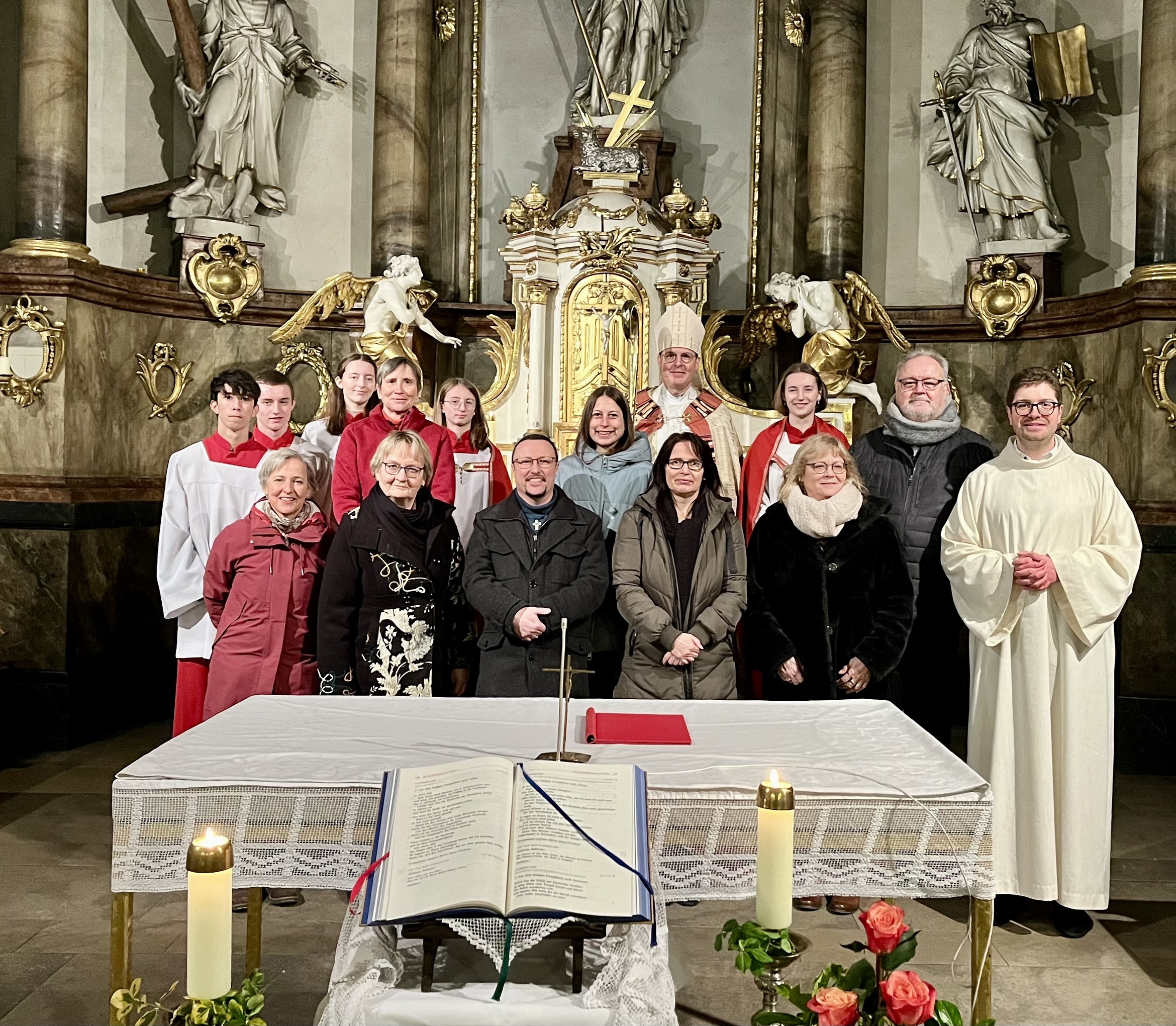 Eine Begegnung im Pfarrsaal schloss sich an, bei dem Familien, Freunde und Gemeindemitglieder mit den neuen Gottesdienstbeauftragten ins Gespräch kamen.