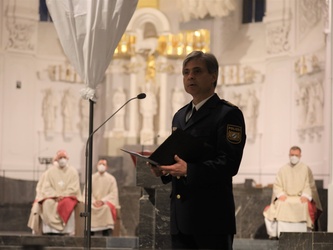 Wie Einsatz für die Mitmenschen nach dem Vorbild Jesu aktuell in Coronazeiten aussieht, erzählten Michael Lindner-Jung von der Würzburger Bahnhofsmission, Sonja Schwab, Leiterin des Fachbereichs Gesundheit und Alter beim Diözesan-Caritasverband, Dr. Markus Ewald, Chefarzt für Innere Medizin am Schweinfurter Krankenhaus Sankt Josef, Ritaschwester Anna-Maria Kempf, deren Gemeinschaft sich in der Familienpflege und in Kindertagesstätten engagiert, Polizeidirektor Uwe Sauer, Leiter der Einsatzzentrale des Polizeipräsidiums Unterfranken, Kommunionmutter Stephanie Blum sowie Pastoralreferent Michael Marx, Diözesanbeauftragter für Hospiz- und Trauerpastoral.