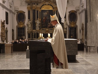 Die Karfreitagsliturgie vom Leiden und Sterben Christi feiert Bischof Jung zur Todesstunde Jesu am Karfreitag, 2. April, um 15 Uhr im Kiliansdom.