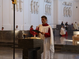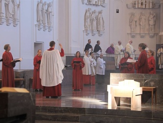 Die Frauenchoralschola „Vox anima“ sang unter der Leitung von Domkantor Alexander Rüth, Domorganist Professor Stefan Schmidt spielte die Orgel. Nach dem Gottesdienst erhielten Vertreter der 19 Dekanate und der Stadtpfarrei Schweinfurt die Öle, die in den folgenden Tagen in die Gemeinden der Diözese gebracht werden.