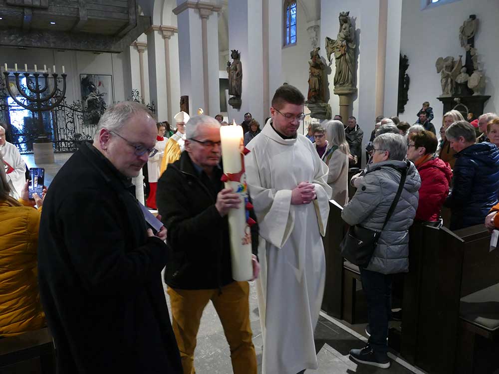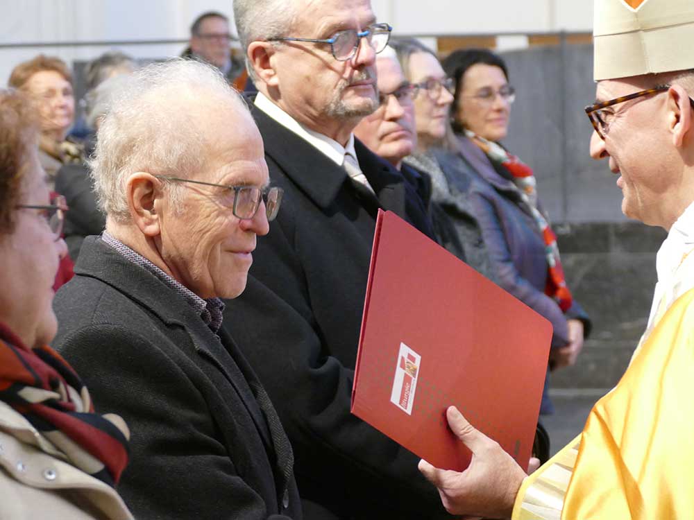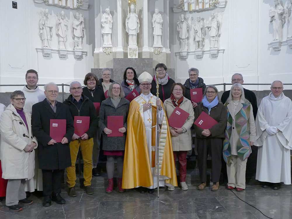 Dann überreichte Bischof Jung die Urkunden. Im Gebet erbat die Gemeinde den Segen Gottes für die Neubeauftragten. Eine Begegnung im Burkardushaus schloss sich an.
