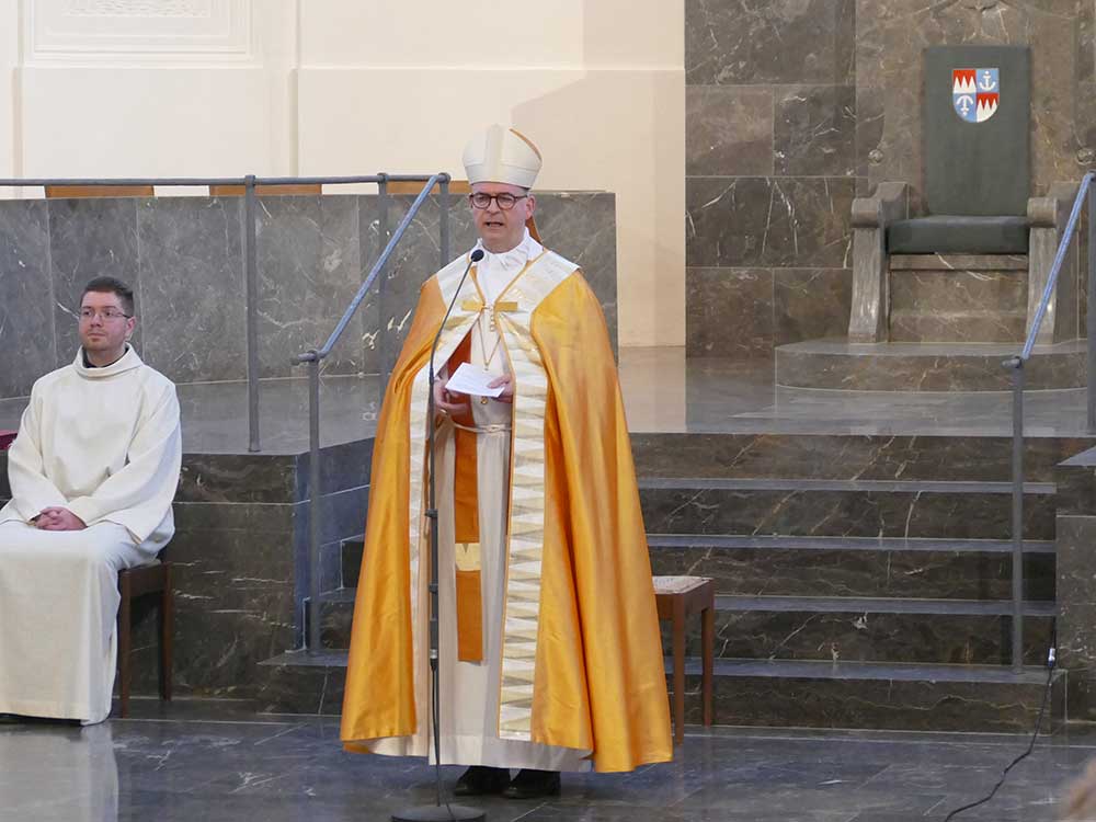 In seiner Predigt betrachtete Bischof Jung die Worte des Apostels Paulus an die Gemeinde in Korinth. Darin enthüllt der Apostel „ein Geheimnis: Wir werden nicht alle entschlafen, aber wir werden alle verwandelt werden – plötzlich, in einem Augenblick, beim letzten Posaunenschall.“ Im Tod löse sich der Mensch „nicht irgendwie auf“ und das Leben ende nicht „im Nirwana“, sagte der Bischof: „Im Tod wird das Leben verwandelt. Gott wandelt das Sterbliche in uns um.“ Diese Botschaft könne in der heutigen Zeit nicht oft genug unterstrichen werden. „Gerade im Tod vollendet sich das Taufgeheimnis. In der Taufe werden wir getauft auf den Tod des Herrn.“ Der Tod komme immer überraschend, ungebeten und zu schnell, fuhr der Bischof fort. „Der Tod ist immer ein Weckruf, selbst dann, wenn man sich schon wochenlang darauf vorbereitet hat.“ Es sei gut, sich nicht an den Tod zu gewöhnen, sich immer neu mit der Wirklichkeit des Todes zu konfrontieren und damit auseinanderzusetzen, um vor unguter Routine bewahrt zu bleiben.