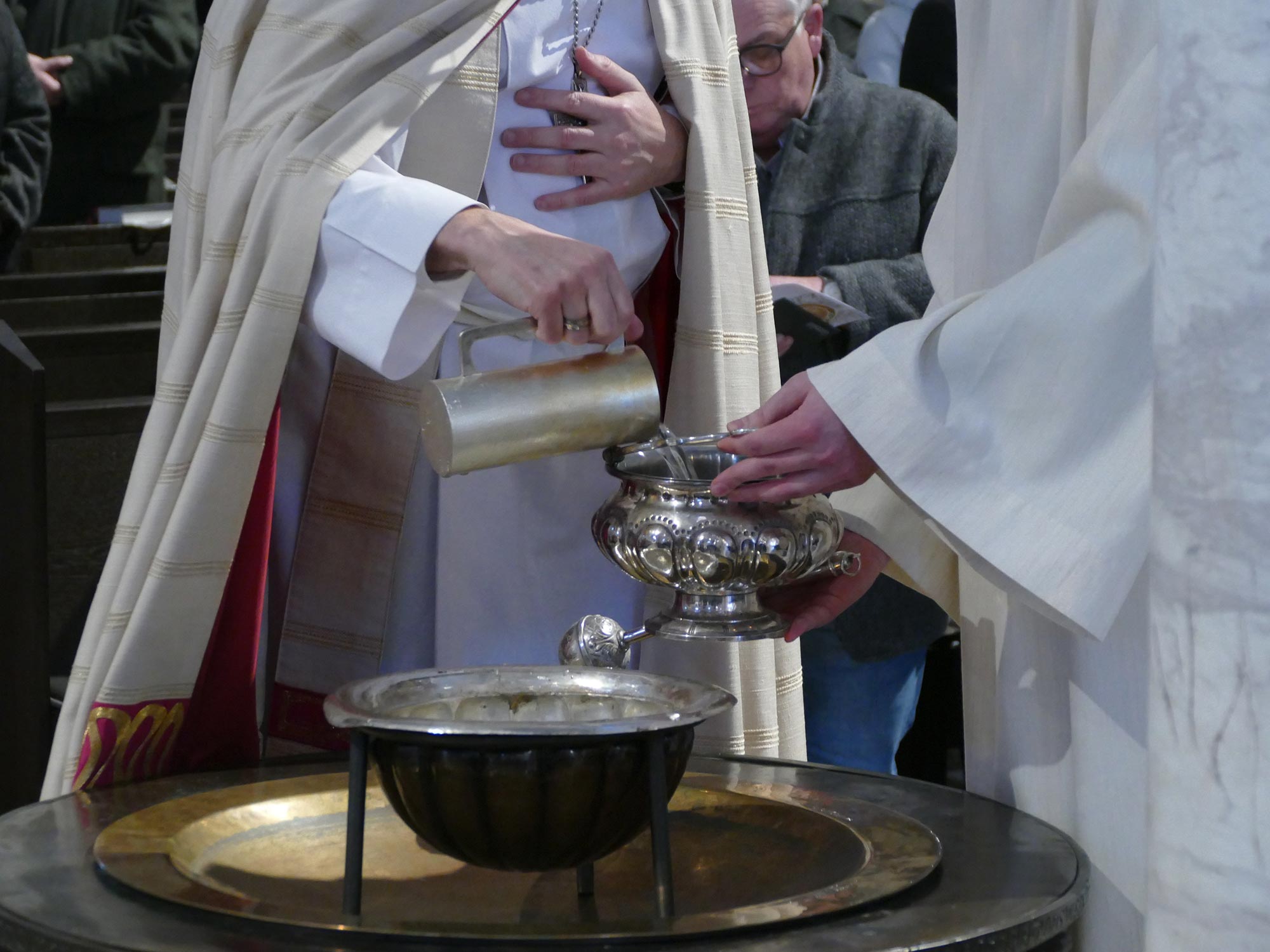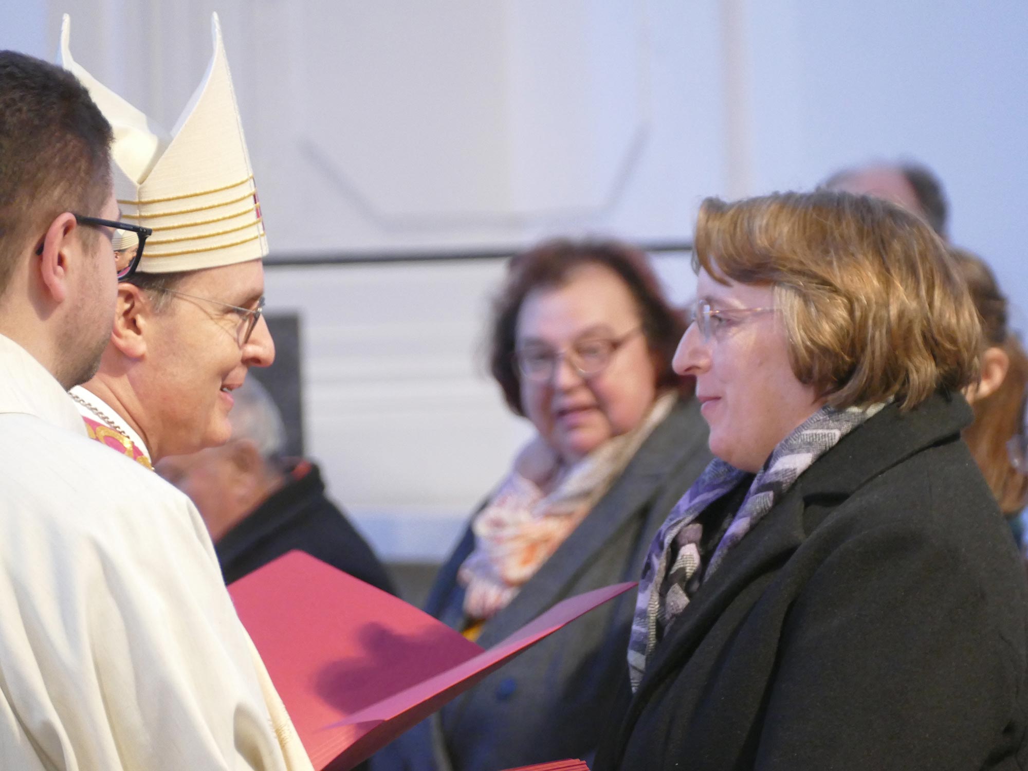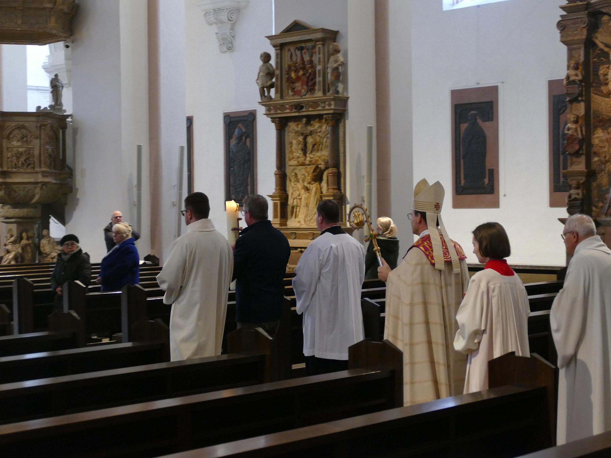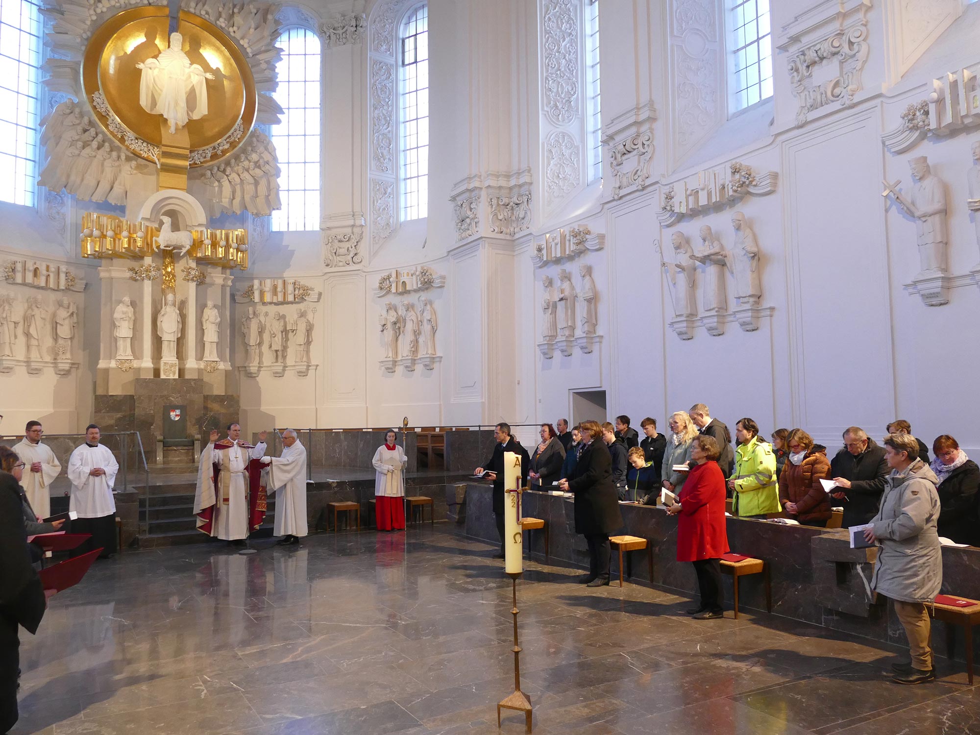 Zu Beginn versammelten sich alle am Taufbecken des Domes zum Taufgedächtnis. Begleitet von der Osterkerze zogen die zukünftigen Begräbnisleiter/-innen mit ihren Familien, Freunden und Vertretern der Gemeinden in den Hochchor. Nach Schriftlesung und Predigt überreichte Weihbischof Paul Reder die Urkunden, bevor er im Gebet Gottes Segen auf die Neubeauftragten herabrief. Im Anschluss an die Feier fand eine Begegnung im Burkardushaus statt.