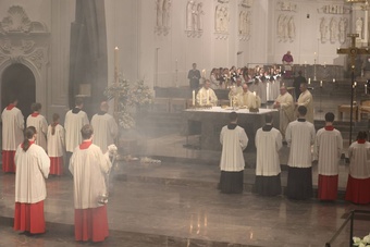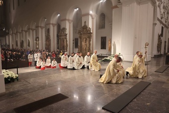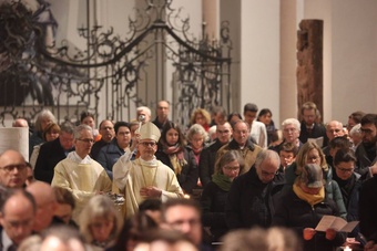 Das Osterevangelium berichte von der Angst der Frauen, Jesus wieder zu verlieren. Sie fallen vor ihm nieder und wollen seine Füße umfassen. Jesus aber lässt das nicht zu. „Wer nur noch klammert, kann sein Leben nicht selbst in die Hand nehmen. Aber gerade dazu will Ostern uns befähigen“, erklärte Bischof Jung. „Ich bin bei euch alle Tage bis zum Ende der Welt“, verheiße Jesus seinen Jüngern an Ostern. „So getröstet können wir uns in das neue Leben vortasten und behutsam die ersten Schritte in die Wirklichkeit der Auferstehung wagen.“